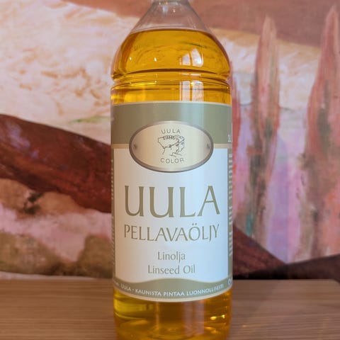 Öljymaalin ohenne valmistettu keitetystä pellavaöljystä (vernissa osuus 35 %), ja aromaattivapaasta hiilivetyliuottimesta, osuus 65 %.