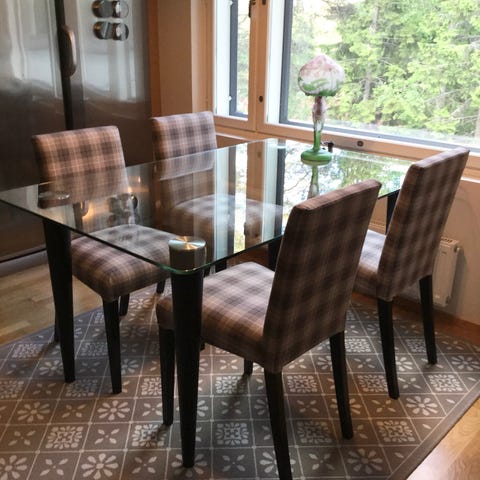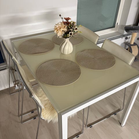 Myydään moderni ruokailuryhmä – lasipöytä + 4 tuolia