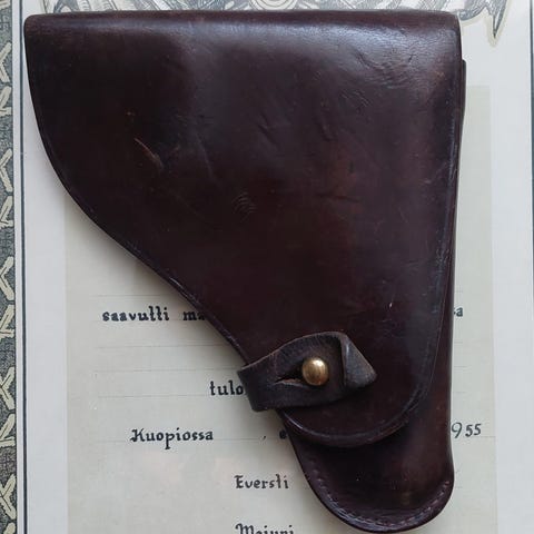 Asevarikkotyönä valmistettu umpikotelo, jollaisessa itsekkin aikoinaan päivystäjänä ollessa kannoin Beretan m/35 pistoolia. Käyttämätön ja uudenveroisessa kunnossa.