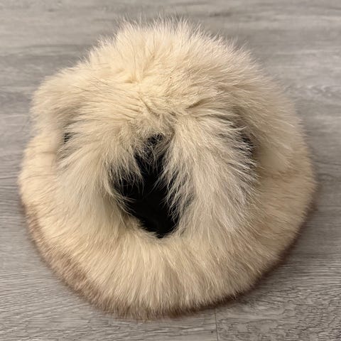 Tyylitietoiselle miehelle käytännöllinen ja lämmin karvahattu. Voidaan käyttää korvaläpät ylös sidottuna tai alas korville laskettuna. Yksilöllistä käsityötä. Turkis muistaakseni sinikettua.