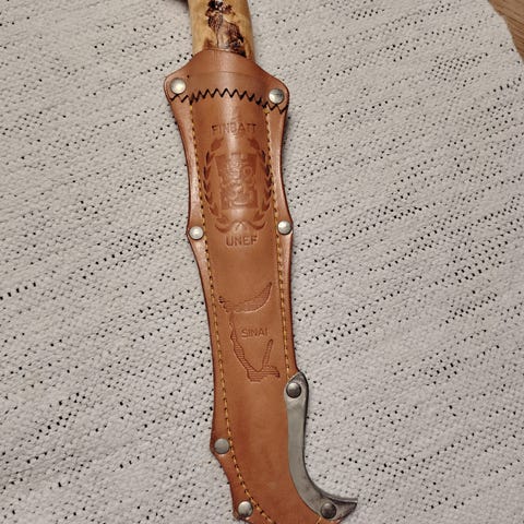 Valkoinen puukko, kahva melko varmasti poronluuta. 13cm