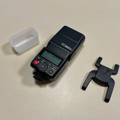 Myydään vähällä käytöllä ollut Godox TT350S ‑salamavalo Sony-järjestelmäkameroille.