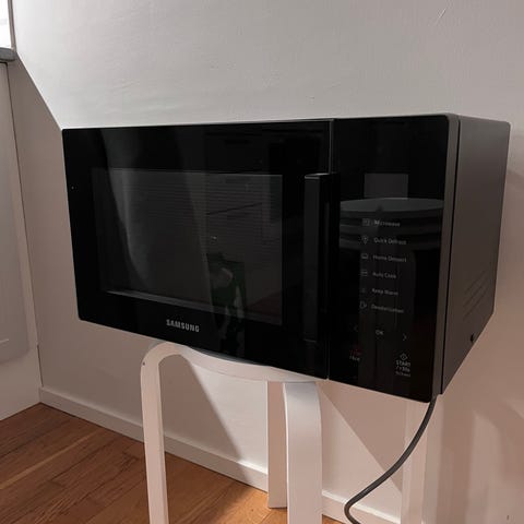 Samsung mikroaaltouuni valkoinen. Laitteessa on mekaaniset kiertonupit tehon ja ajan säätöön. Tehotasoja on useita, ja etupaneelissa on merkitty watit eri tasoille. Uunissa on lasinen pyörivä lautanen ja sisätila on metallipintainen. Etuluukku on tummennettua lasia, ja uunissa on T.D.S. (Triple Distribution System) -lämmitysjärjestelmä tasaisempaa lämmön jakautumista varten. Sopii esimerkiksi ruoan lämmittämiseen ja sulattamiseen kotikäytössä.