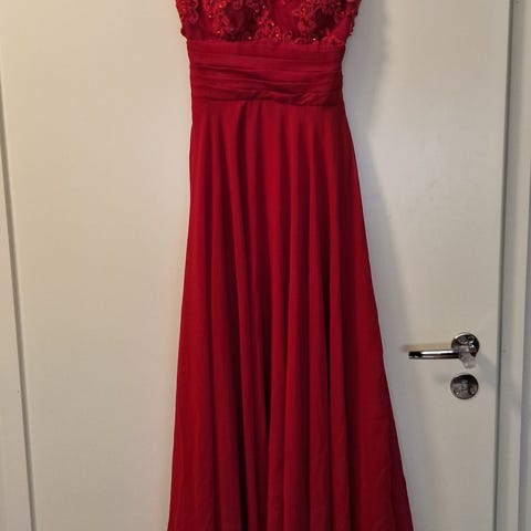 Zazabella ilta- tai juhlapuku, koko S. Väri vaaleanpunainen. Materiaalina sifonki, jossa päällä pitsikoristeinen yläosa. Mekossa leveät olkaimet ja nyöritys selässä, mikä mahdollistaa istuvuuden säätämisen. Sopii esimerkiksi juhliin ja muihin tilaisuuksiin, joissa tarvitaan pitkää juhlapukua.