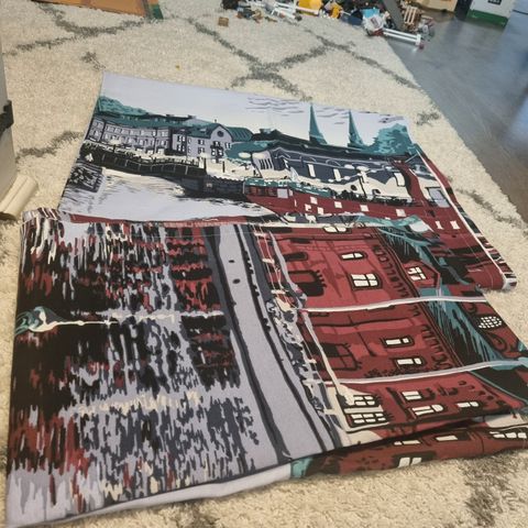 4 kpl Vallilan kelohonkaverhoja ja kaksi koristetyynynpäällistä (50x50) Tyynynpäälliset hieman haalistuneet.
