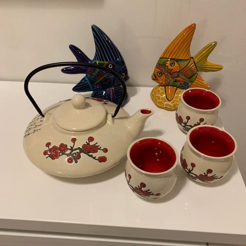 San Fransiscon Japantownista v. 2012 ostettu teepannu ja 4kpl teekuppeja. Käyttämätön. Nämä PK-seudulla jossa voi tulla katsomaan ennen ostopäätöstä.