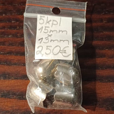 Korunosia. Helmihattuja/Kalotteja. Koko: 15mm x 12mm. Myynnissä 2pss. 4kpl/pss. 1ss/1,20€. 2pss/2,40€. Haku tai postitus kirjeenä 2,95€ kirjekuoren kanssa tai helposti kuoressa 3,75€.