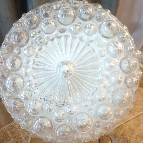 N 90 cm halkaisijaltaan oleva kaunis ja hillitty lasi- ja metallivalaisin kolmella valopisteellä.