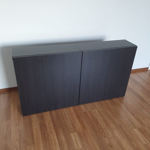 Kuvan mukainen Ikean kaappi. Kunto hyvä. Joitain naarmuja ym. käytön jälkiä näkyvissä, mutta yleisilmeeltään kuitenkin siisti. Toisessa päädyssä ruuvinreijät (näkyy kuvassa), näissä ollut kiinnitettynä yksi bestå kaappi lisää, joka myöskin on myynnissä.
