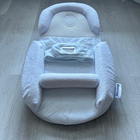 Doomoo Supreme Sleep unituki. Kätevä apu vastasyntyneestä alkaen. Auttaa pysymään selällään nukkuessa. Voi käyttää sängyssä tai esimerkiksi vaunuissa. Apuna myös refluksivauvan kanssa. Vauva nukkuu kohotetussa kulmassa.