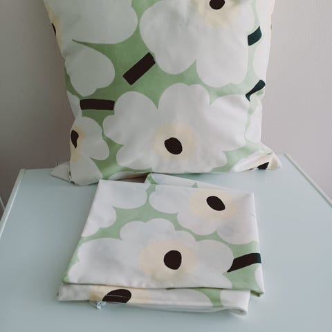 Myydään uusi,lappu vain leikattu irti,musta unikko kukkainen koristetyynynpäällinen.