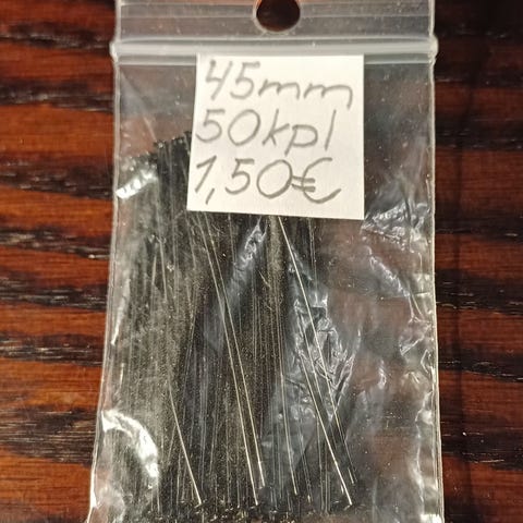 Korupiikit. Kirkkaan hopean värisiä. Tappipäisiä. 22mm. 38kpl. 0,50€. Haku tai postitus kirjeenä 2,95€ kirjekuoren kanssa tai helposti kuoressa 3,75€.