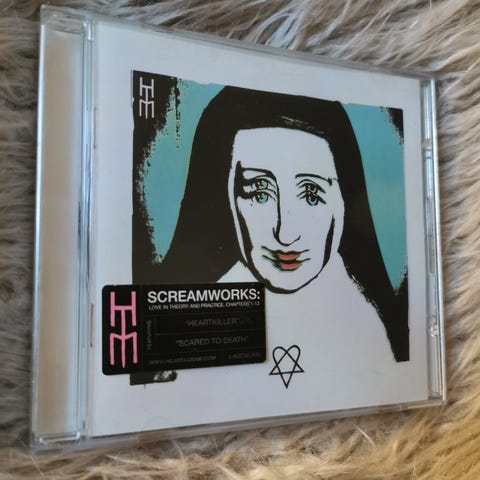 HIM Screamworks: Love in Theory and Practice CD-albumi. Fyysinen musiikki-CD, jossa alkuperäinen kansivihko ja kotelo. Takakannessa kappalelistaus, mukana mm. kappaleet "Heartkiller" ja "Scared to Death". Sopii CD-soittimille ja kokoelmakäyttöön.