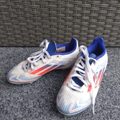 Valkoiset Adidas nappulakengät jalkapalloon.