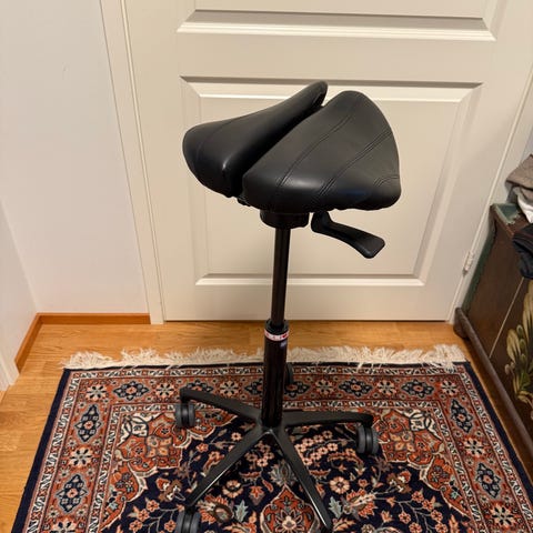 Tukeva ja hyväkuntoinen Salli Satulatuoli. Mallista en mene 100% takuuseen, todennäköisesti Salli Swing. Tuotenumero näkyy kuvassa, jos sen perusteella haluaa selvittää lisää. Istumakorkeus korkeimmillaan n.79cm. Erinomainen istua, keinuu niin sivusuunnassa kuin eteen ja taakse. Ollut vähällä käytöllä. Muutossa istuinosaan tuli pari pientä naarmua. Maksoi uutena tarjoushintaan lähemmäs 600e. Käyttöohjeet tallella. Vain nouto.