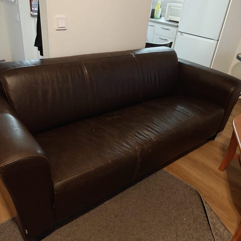 Kuvanmukainen harmaa kangassohva. Mitat suunnilleen. Kuvan ruskea, nahkainen sohva. Vain nouto hissittömän talon 1,5-2 kerroksesta. Haku onnistuu 14.2. tai 21.2. päivien aikana.