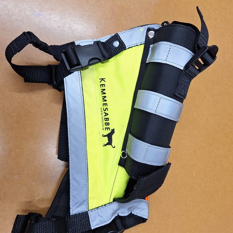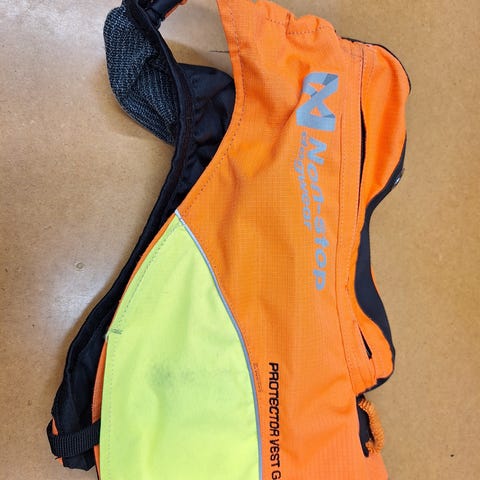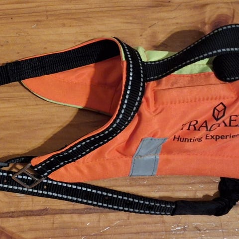 Mäyräkoiralla ollut tutkaliivi. Käytön jälkiä on. Mahan ympärysremmi päästä vähän katkennut. Ei vaikuta käyttöön. Selän pituus 16cm. Ympärysmitta remmiin kanssa n. 56cm.remmi joustaa yhdestä kohtaa. 18e/tarjous