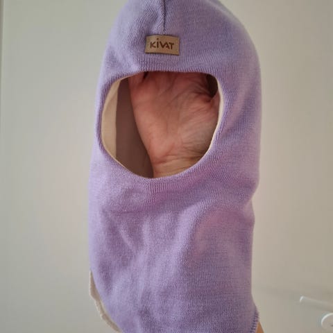 Muutamia kertoja käytetty kypärämyssy. Koko 1 (6-12 kk). 67% merinovillaa, 30% silkkiä ja 3% lycra. Savuton ja eläimetön talous.