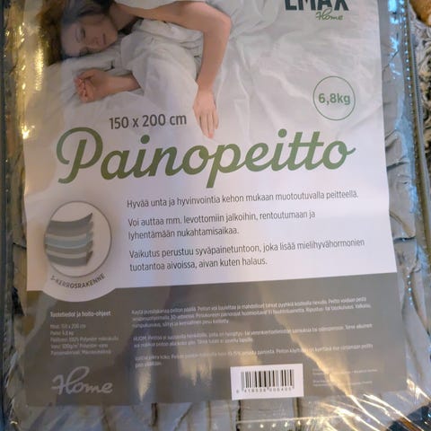 Myyntiin 2-3 kertaa käytössä ollut painopeitto 9kg käytettäessä ollut pussilakana peiton päällä, säilytetty omassa pussissa
