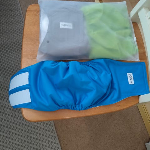 Uusia urossuojia pienelle koiralle, ympärysmitta 36-42cm. Yhtä suojaa sovitettu ja todettu liian pieneksi