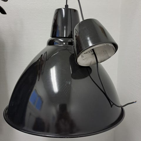 Myydään Ikean riippuvalaisin harmaalla varjostimella.