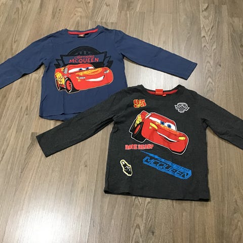 Myydään kaksi Disney Cars aiheista pitkähihaista paitaa. Tumman paidan väreissä näkyvissä haalistumaa. Koko 110cm