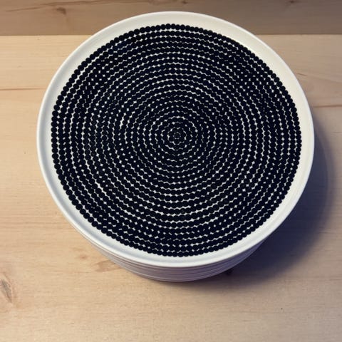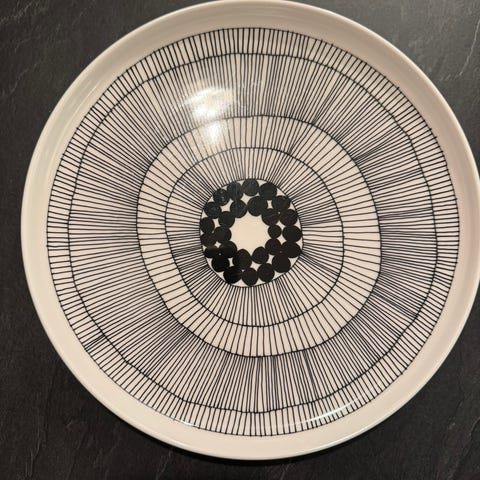 Marimekko Oiva Siirtolapuutarha -astiasto, sisältää 6 kpl mukeja ja 6 kpl lautasia. Erinomaisessa kunnossa. Myytävissä myös erikseen ja yksittäin. Kuvassa 8 kpl lautasia, mutta todellisuudessa tosiaan 6, sillä 2 kpl jo myyty.