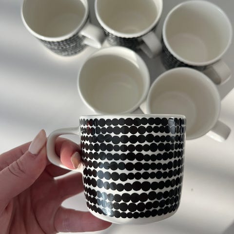 Mukit 6 kpl + lautaset 6 kpl = 160€