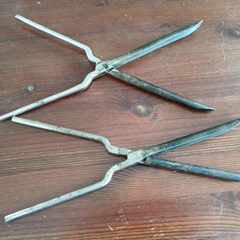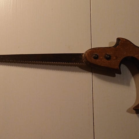 Vähintään noin sata vuotta vanha käsisaha. Ollut itsellä koriste-esineenä.