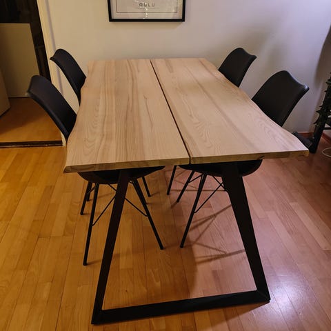 Hyvä pöytäryhmä myynnissä! Ollut käytössä meillä 2- vuotta. Hieman on elämisenjälkiä, ja koirataloudessa on ollut käytössä. Mukana tulee pöytäliina.