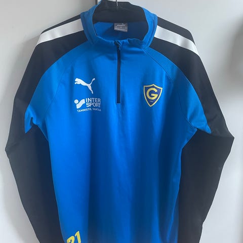 Adidas Aeroready jalkapallopaita miehille. Koko M. Väri tummansininen, hihoissa valkoiset raidat. Paidassa on vetoketjullinen kaulus ja pitkät hihat. Aeroready-materiaali on suunniteltu siirtämään kosteutta iholta ja kuivumaan nopeasti, mikä tekee paidasta sopivan jalkapalloon ja muuhun urheiluun sekä harjoituskäyttöön.