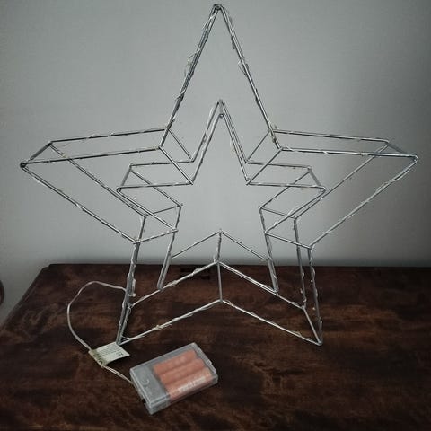 Toimivat paristoilla, sydämmen leveys n.65cm ja tähtien n.45cm.