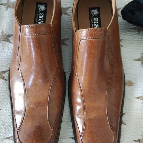 Erittäin laadukkaat miesten kengät, ostin Turun Herrainpukimosta. Olivat vain käytössä itselle liian pienet, en pysty pitämään. Nahkapohjissa kumit joka lisää käyttökelpoisuutta. Mukaan alkuperäinen laatikko ja säilytyspussit. Kuvassa näkyvät lepolestit eivät kuulu kauppaan.