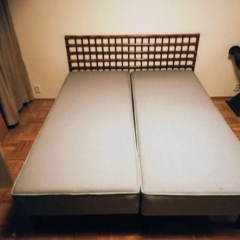 Mukana yksi patja, joka riittää parisängyksi (sängyt vierekkäin).