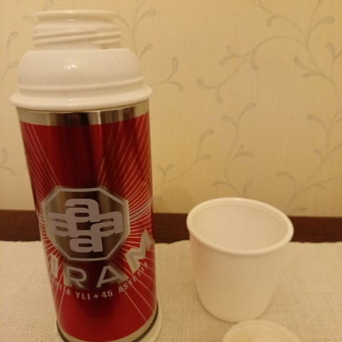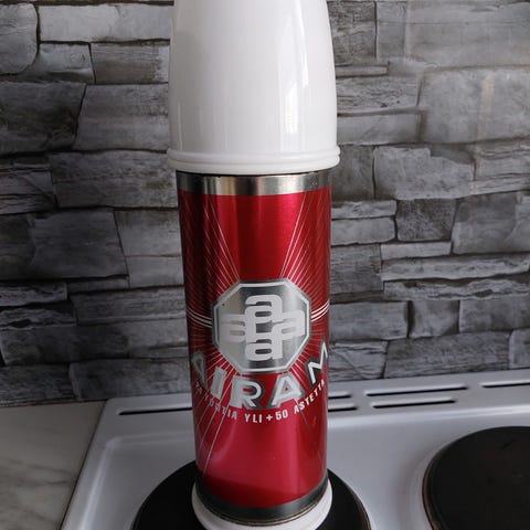 Airamin 1,3 litran vanhempaa mallia oleva termosmuki pillillä ja kahvalla. Mukissa on muoviletku pillin päällä ja kumisia osia mm. tulppana. Hinta sovittavissa. Tarjoa!