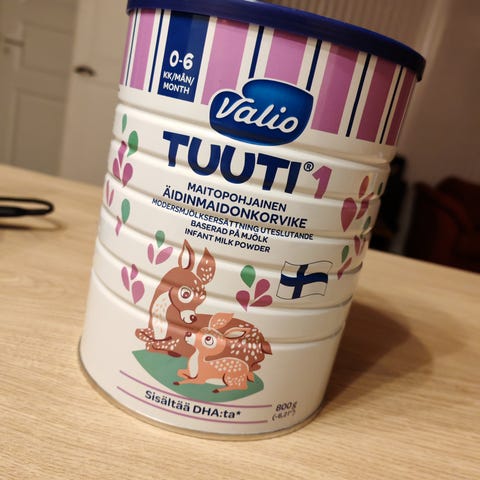 Äidinmaitokorvike Tuuti1 jauheena ja on avaamaton. Päiväystä on 2027 asti joten kiirettä ei ole avata. Meillä on jo Tuuti2 käytössä ja tämä sitten vaan unohtui käyttää.