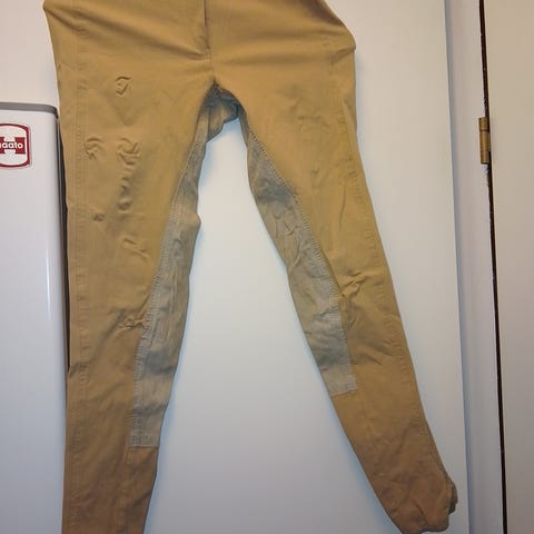 Myynnissä siistit ja täysin ehjät, elegantit huippumerkki- ratsastushousut kokoa 36. Aivan pientä kulumaa on käytössä tullut ,mutta ei mitään isompaa virhettä. Nämä tyylikkäät ja laadukkaat Pikeur ratsastushousut on väriltään tummanruskeat ja housuissa on tummemmanruskeat mokkajäljitelmäkokopaikat. Housuissa on etupuolella pieni vetoketjutasku. Lahkeiden suussa on tarrasäätö, niinkuin ratsastushousuissa yleensäkin.