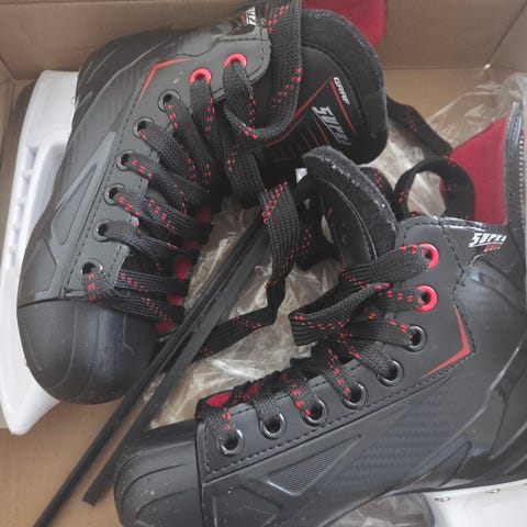 J Pulse X lasten luistimet, koko 34. Väri musta punaisilla ja valkoisilla yksityiskohdilla. Luistimissa on teräskiskot ja säätöpyörällä kiristettävä nauhamekanismi, jolla lapsi saa itse helposti luistimet kiristettyä sopiviksi sekä nopeasti avattua lukituksen. Ei ehdi pienet kädet jäätyä eikä hermo mennä näillä. Sisäosa on pehmustettu ja vuorattu vaalealla tekstiilivuorella. Soveltuvat vapaa-ajan ja harrasteluisteluun jäällä.