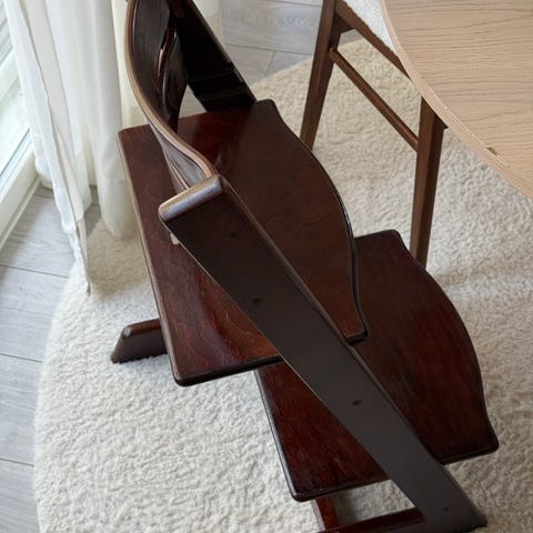 Stokke Tripp Trapp lasten tuoli, väri ruskea. Mukana jalkoihin kiinnitettävä extended glider set, joka tuo vakautta ja turvallisuutta,
