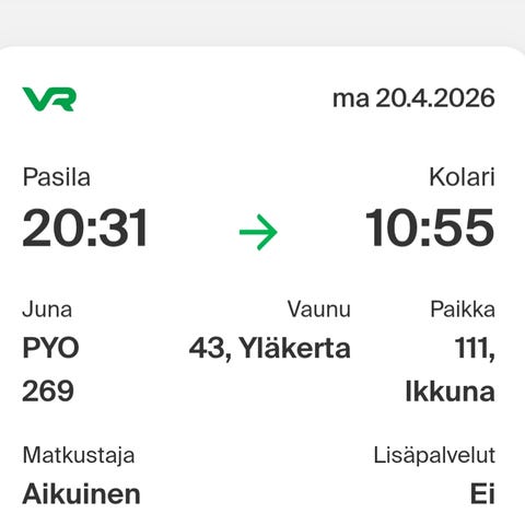 7.2 Junalippu Jyväskylä-Rovaniemi