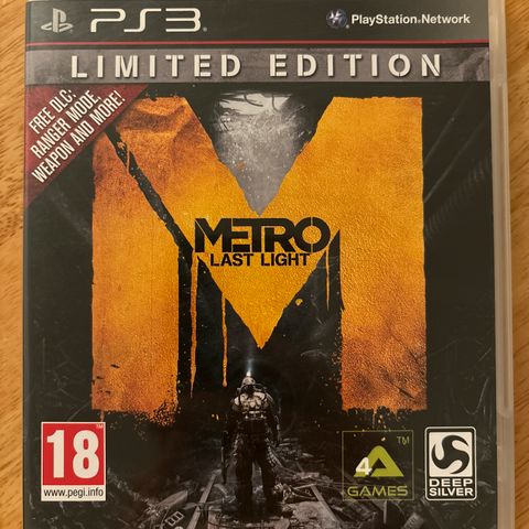 Metro Last Light Playstation 3 konsolille. Erittäin hyvässä kunnossa, naarmuton levy ja uudenveroinen ohjevihko mukana.