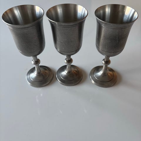 Kuvassa näkyvä Scandia Tenn pikari tina 5 kpl. kork 10cm halk. 4 cm. Postitus tai ToriDilli.