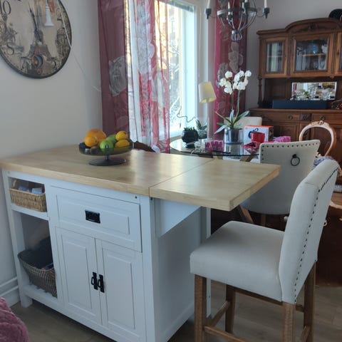 Mittatilaustyönä tehty upea keittiön sydän, josta joudutaan luopumaan keittiöremontin yhteydessä. Käyttötarkoitus esim. Saareke, baaripöytä, korkea ruokapöytä, säilytyskaluste, kirjahylly.
