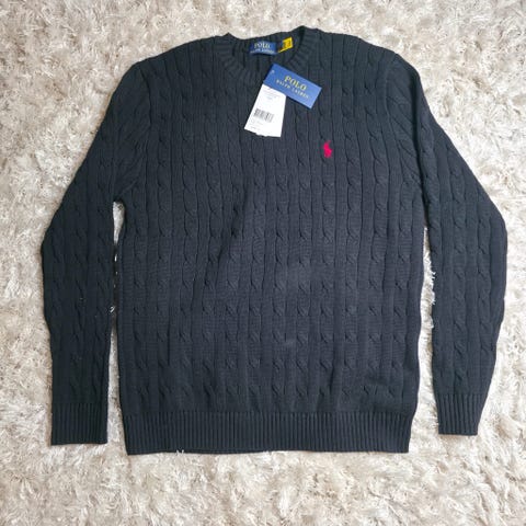 Ralph Lauren neulepaita miehille. Koko M. Väri tummansininen. Materiaali villaa. Pitkähihainen, pyöreä pääntie ja kaapelineuloskuvio. Rinnassa pieni kontrastivärinen logo. Sopii arkikäyttöön ja kerrospukeutumiseen viileämpiin säihin.