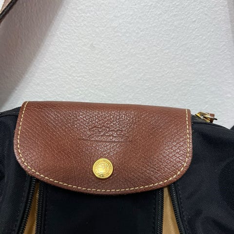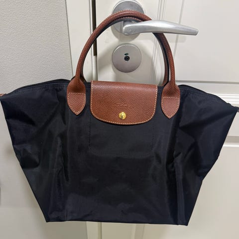 Longchamp kangaslaukku naisille. Laukku on valmistettu kankaasta, ja siinä on lyhyet kantokahvat sekä läppä sulkumekanismilla. Soveltuu arkilaukuksi ja pienten tavaroiden kuljettamiseen.