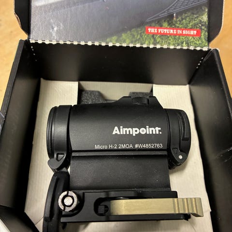 Tällainen tähtäin hetkellisesti ylimääräisenä joten kokeilumielessä myynnissä. Aivan huippukuntoinen aimpointin laatu tähtäin. Käsittääkseni tarkoitettu enemmän metsästyskiväärien päälle mutta miksipä ei sopisi myös arskan päälle. Mroptan jalat kuuluu kauppaan. Kuvassa esimerkkinä kuulapyssyn päällä. Jalat sen verran korkeat että näkee noilla magpullin mbusseilla läpi juuri sopivasti.