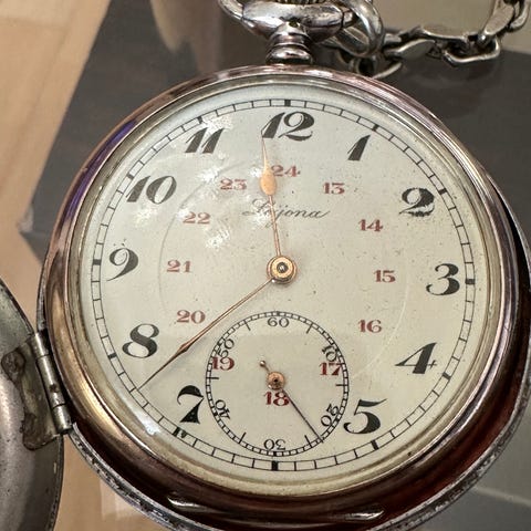 Hienossa kunnossa ja hyvin käyvä hopeinen 0.800 Leijona taskukello. Halkaisija 52mm. Kaikki kuoret hopeaa. Paino 81g.