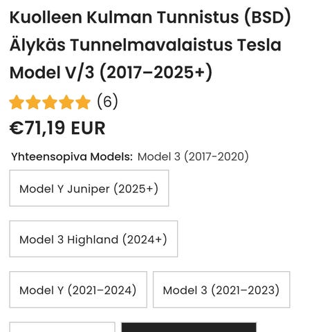 Taitaa käydä kaikkiin malleihin, itsellä 2020 model 3.