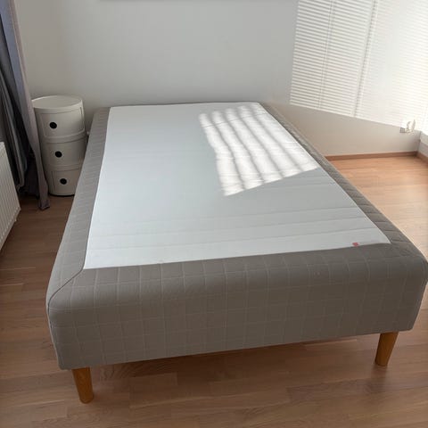 IKEA Skårer sänky ja patja tummanbeigenä + petauspatja