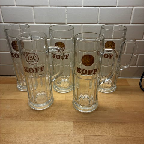 Ehjiä ja hyväkuntoisia, 0,5l olut tuoppeja yht. 6kpl. tarpeettomana!
